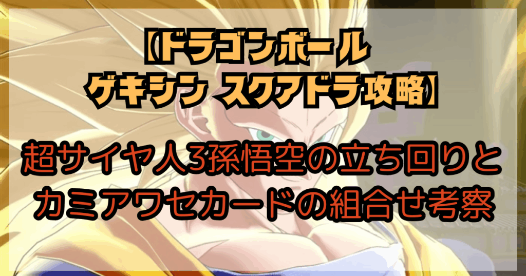 『ドラゴンボール ゲキシン スクアドラ』(ゲキスク)の新キャラ第一弾、超サイヤ人3 孫悟空の立ち回りと相性の良いカミアワセカードについて紹介します!瞬間移動を駆使した神出鬼没な立ち回りと、変身後の圧倒的な火力・範囲攻撃が特徴的なキャラクター... -